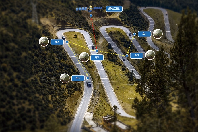 在警卫车队中通过车载节点,完成基于每个车的互联通信保障。