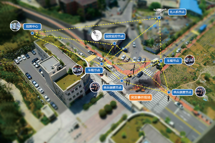 在重大活动安保现场建立前线指挥中,快速部署的固定监控节点作为安保现场的制高点解决区域覆盖,车载节点负责安保现场外围,单兵便携节点负责安保现场内部细分区域,确保无通信盲区和监控死角。